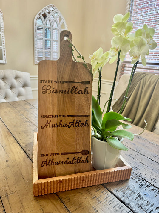 Start With Bismillah Long Wood Cutting Board